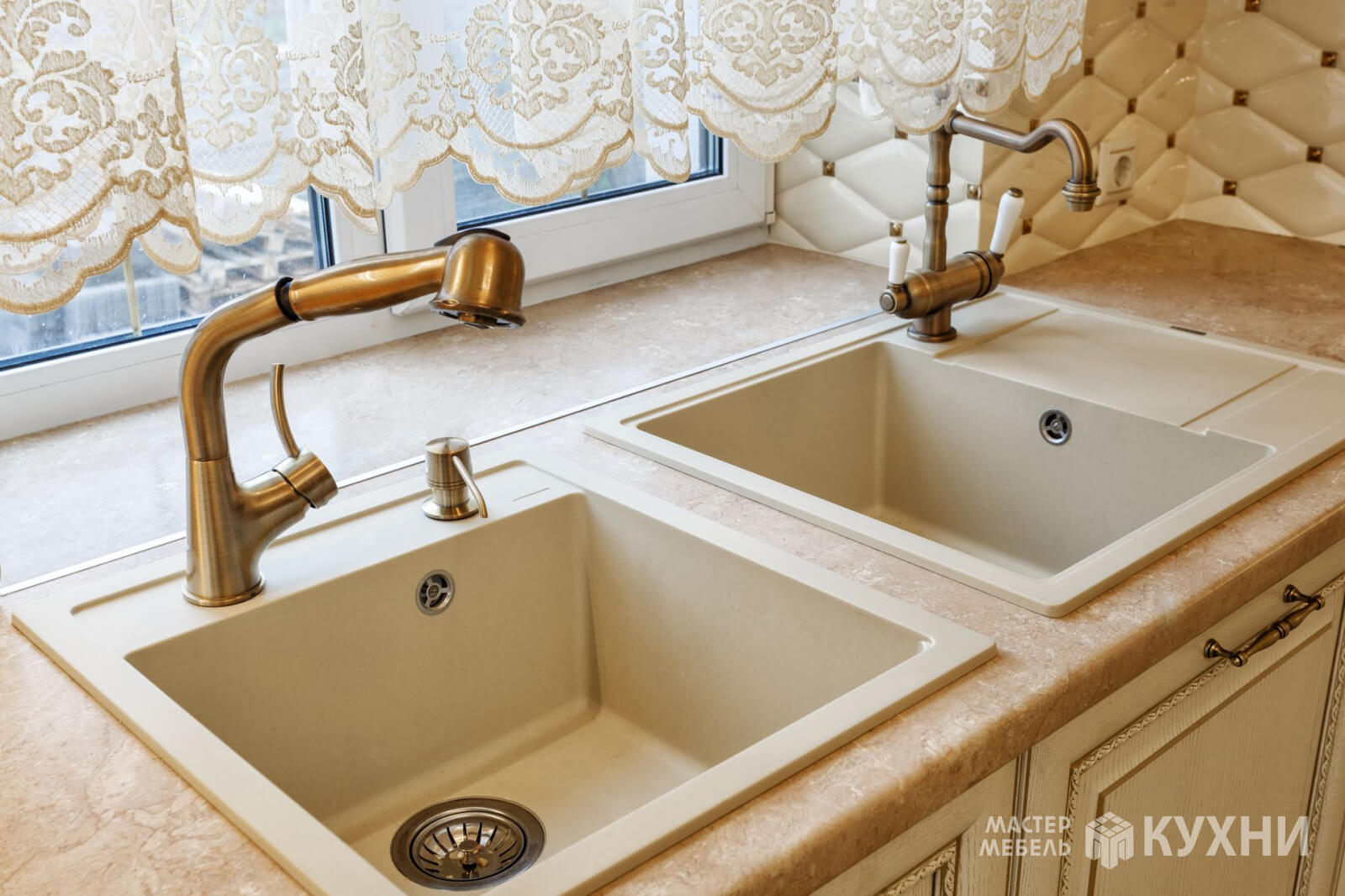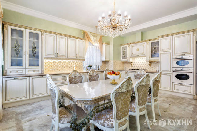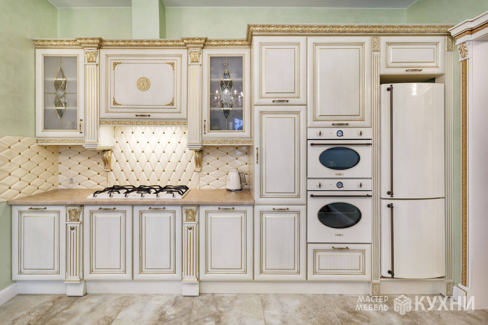 код 101848Классический стиль оформления. Белые фасады с золотистым декором.