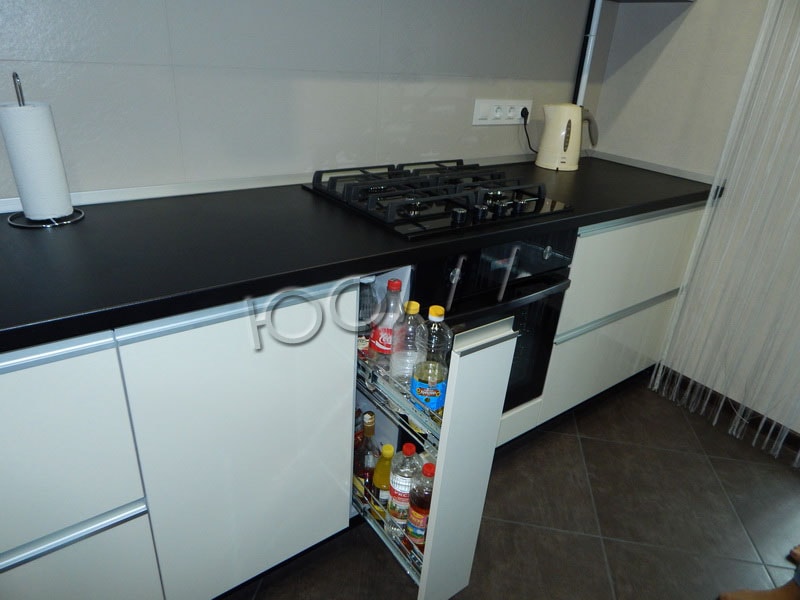 Кухня «Магия» в своем цветовом исполнении отсылает нас к фокусникам, вытаскивающим из шляпы кролика. Матовые белые напольные тумбы органично сочетаются с матовым черным цветом шкафчиков и столешницы. Стильный дизайн и отсутствие внешних ручек дополнено горизонтальным металлическим элементом. Кухня изготовлена со скрытыми креплениями и фурнитурой по немецкой технологии "Фолдинг".
