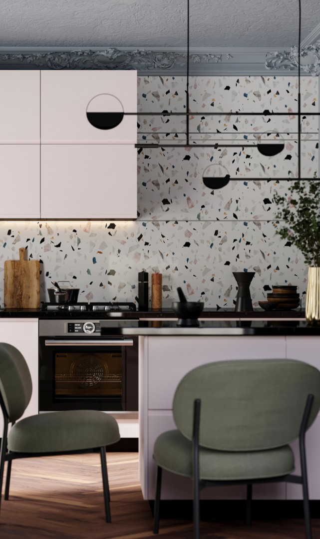 Изысканная кухня с фотопринтом и комбинированными фасадами