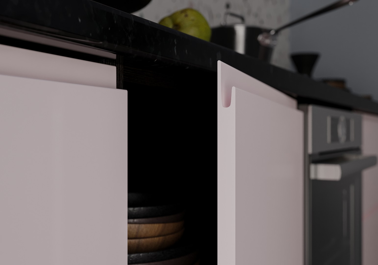 В данной линейке используются покрытые эмалью фасады МДФ 19 мм с интегрированной ручкой – фрезерованный паз в торце мебельного фасада, обеспечивающий высокий уровень эстетичности и удобство эксплуатации.