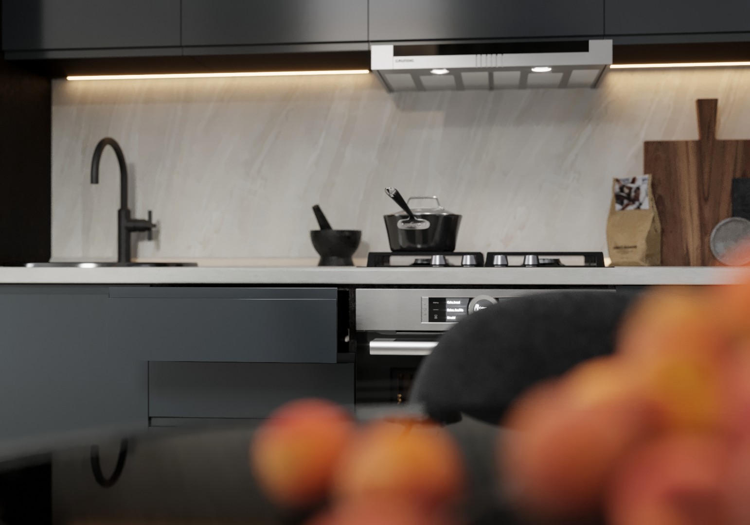 В данной линейке используются покрытые эмалью фасады МДФ 19 мм с интегрированной ручкой – фрезерованный паз в торце мебельного фасада, обеспечивающий высокий уровень эстетичности и удобство эксплуатации.