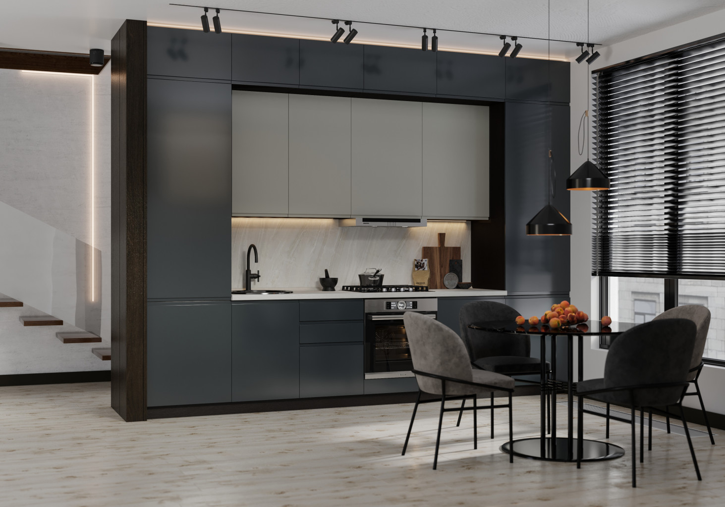 Фасады: крашенный МДФ. Фурнитура: Blum (Австрия).