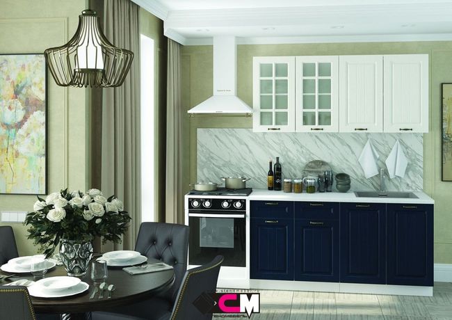 Комбинированные фасады из МДФ. Ширина кухни 190 см.
