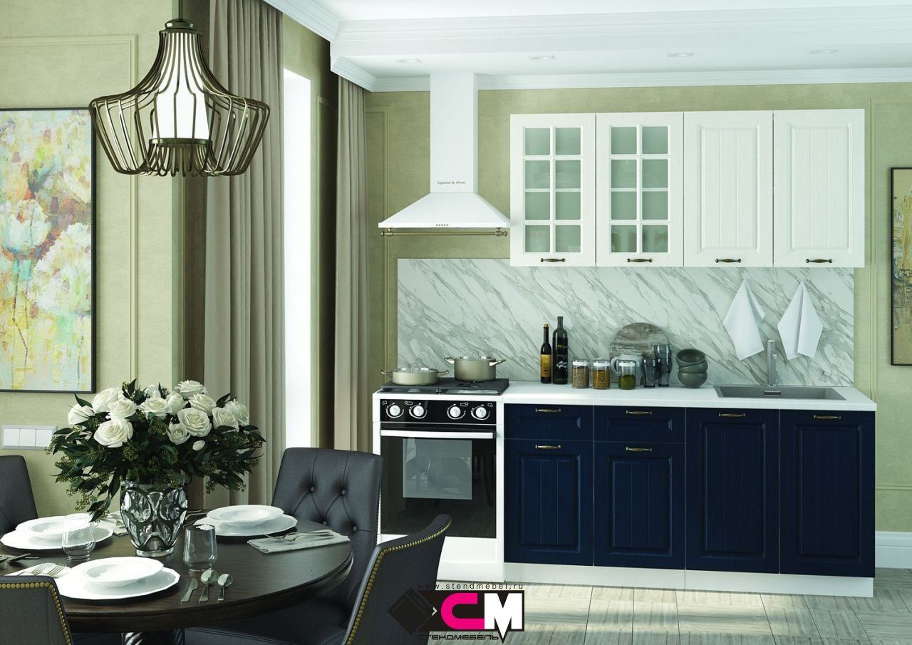 Фасады с фрезеровкой, витражная вставка. Ширина кухни 250 см.