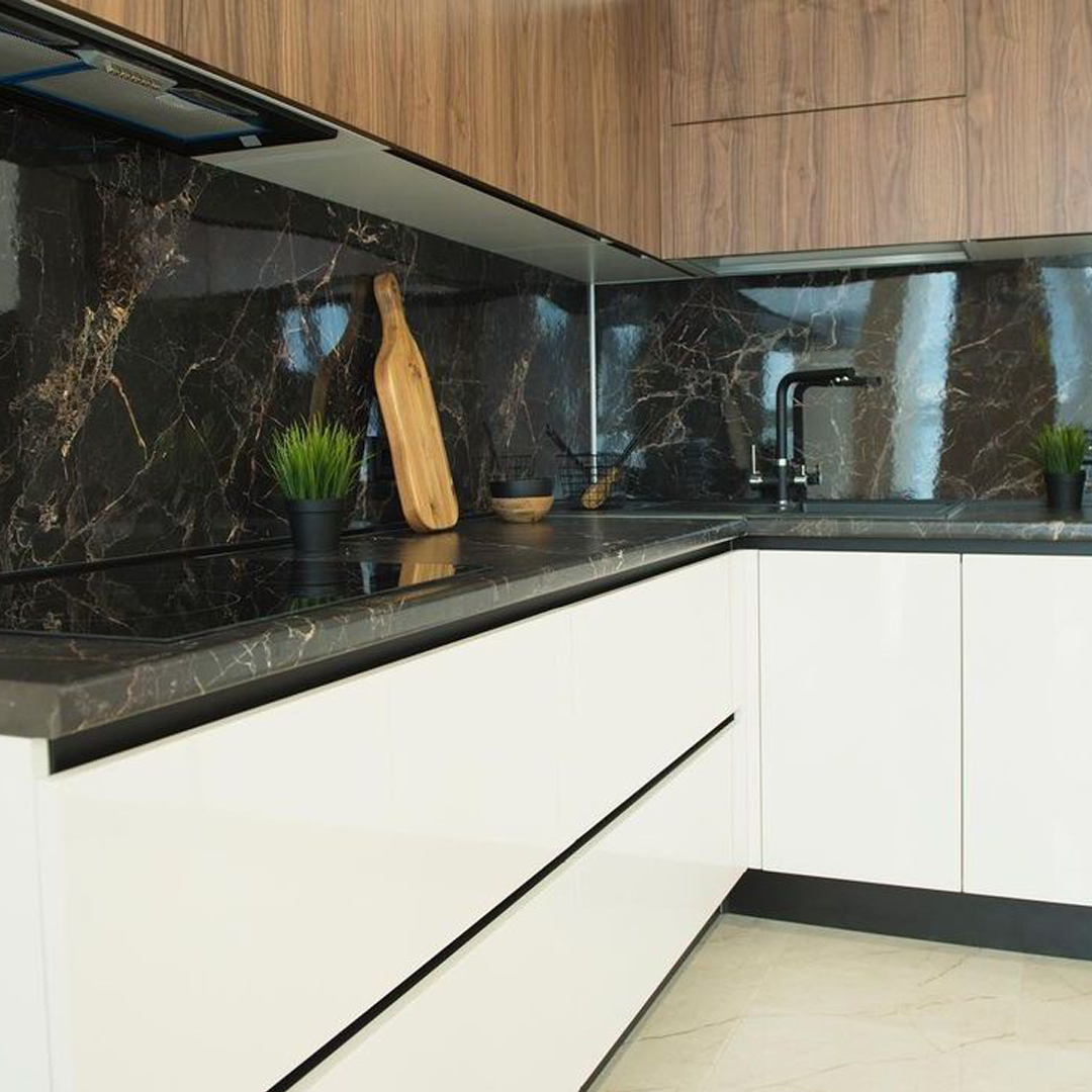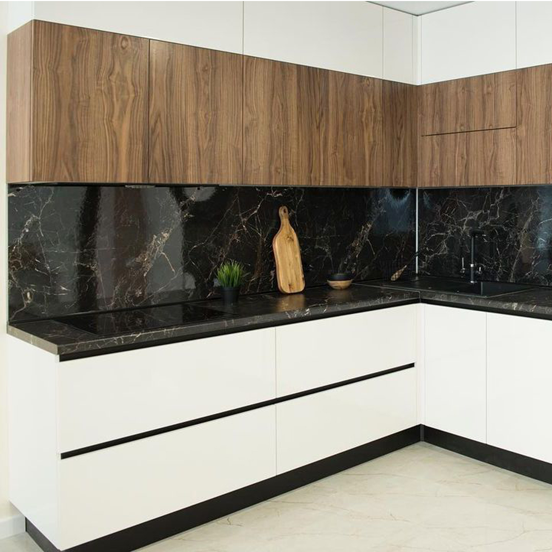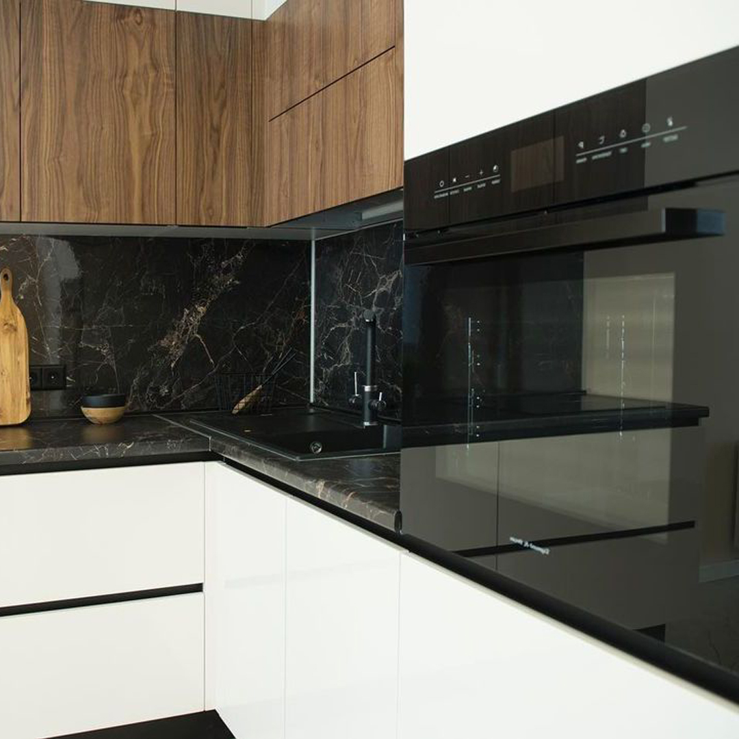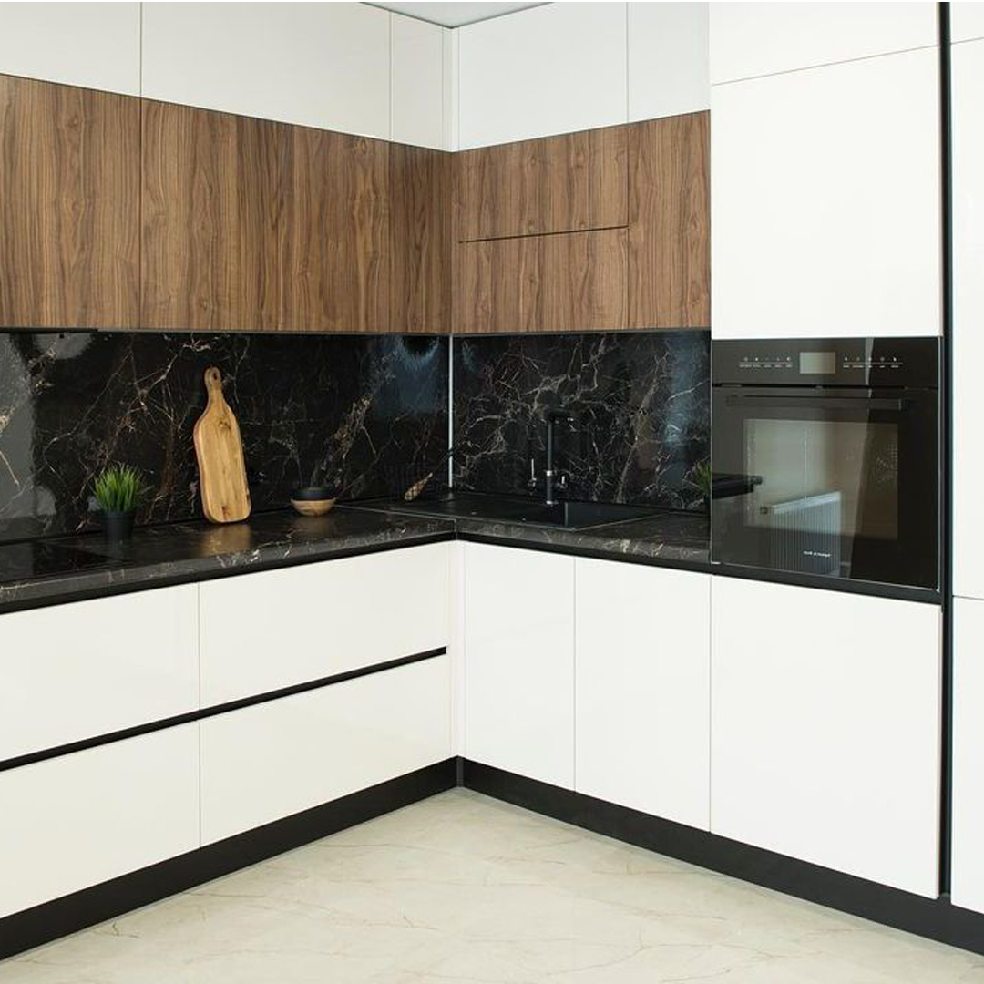 Компактный угловой кухонный гарнитур в стильном минимализме