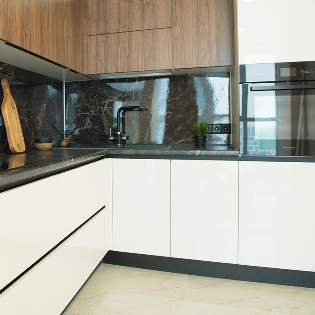 Прямая кухня с комбинированными фасадами