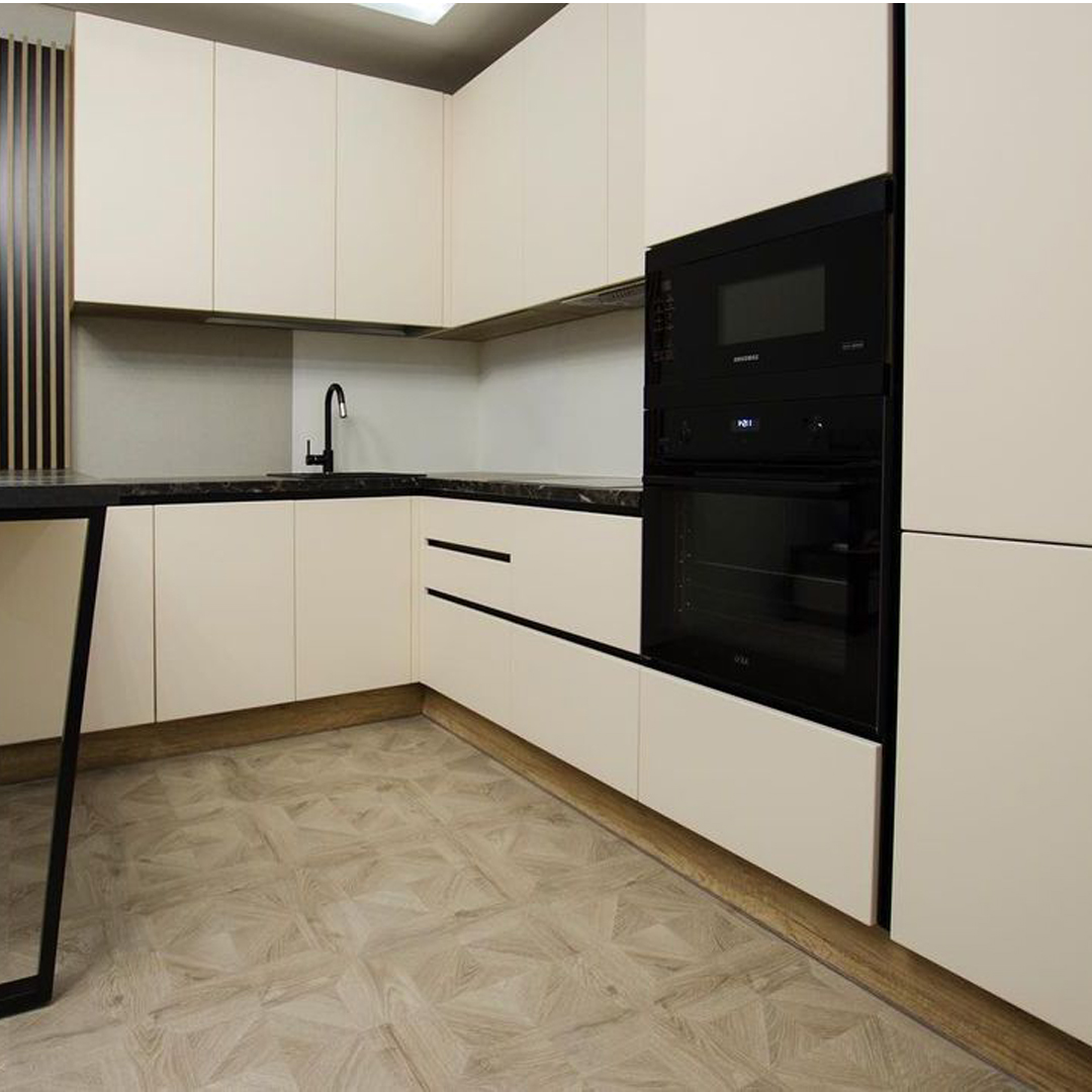 Фасады матовые из крашеного МДФ. Фурнитура: Blum (Австрия).