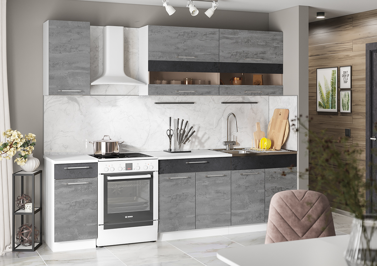 Кухня «Маша 2,0 м» (угольный камень/бетонный камень)