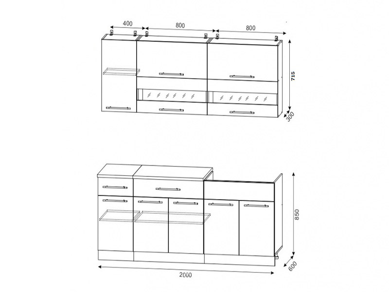 Верхние модули: ШВ 800, ШВ 800, ШВ 400 - (ВхГ) 715х300 мм