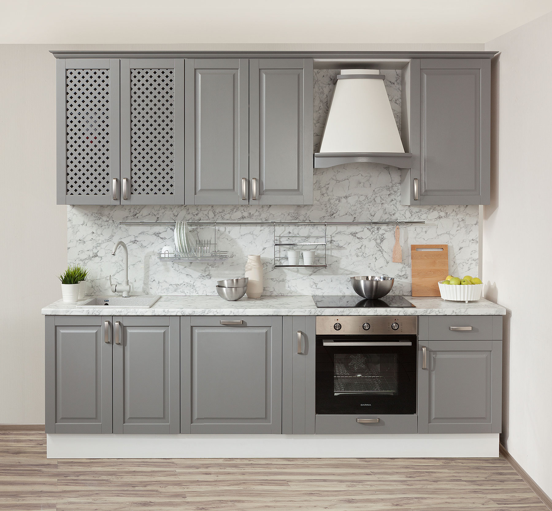 Прямая кухня «Лана» ДСП 1.6 м, дуб крафт белый/дуб крафт серый