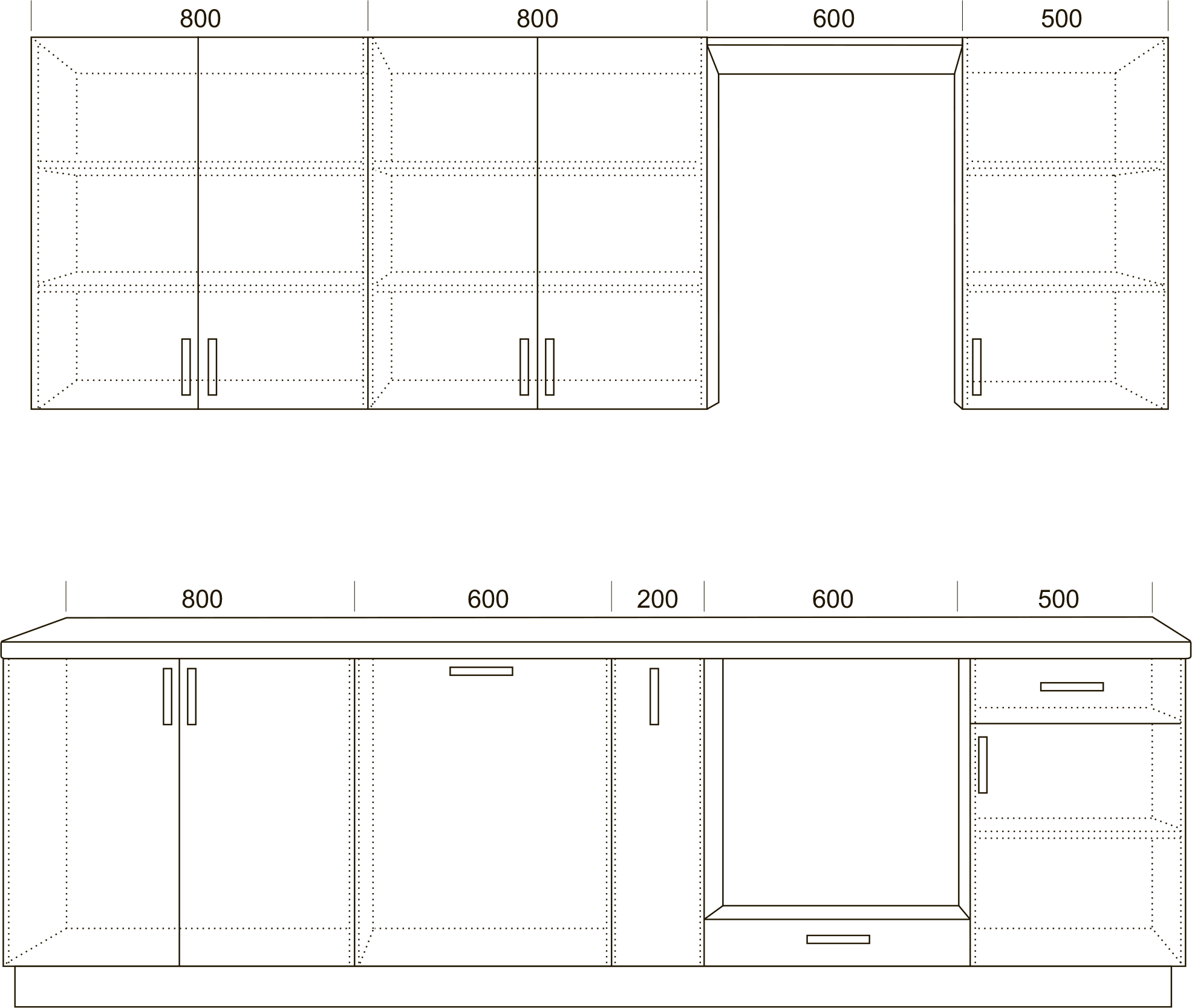 Материал фасада и корпуса: ЛДСП 16 мм. Ширина кухни 150 см.