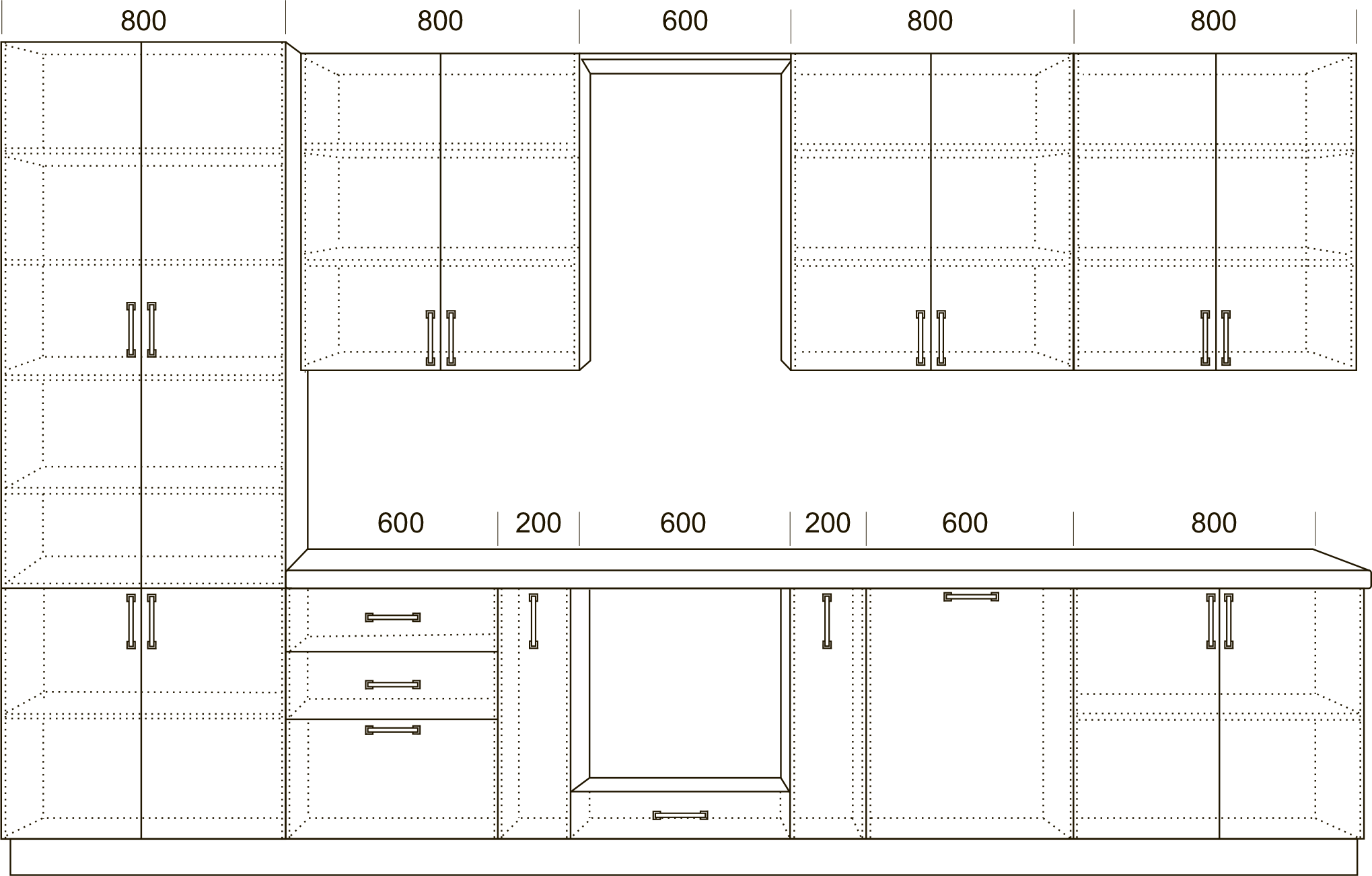 Материал фасада и корпуса: ЛДСП 16 мм. Ширина кухни 100 см.