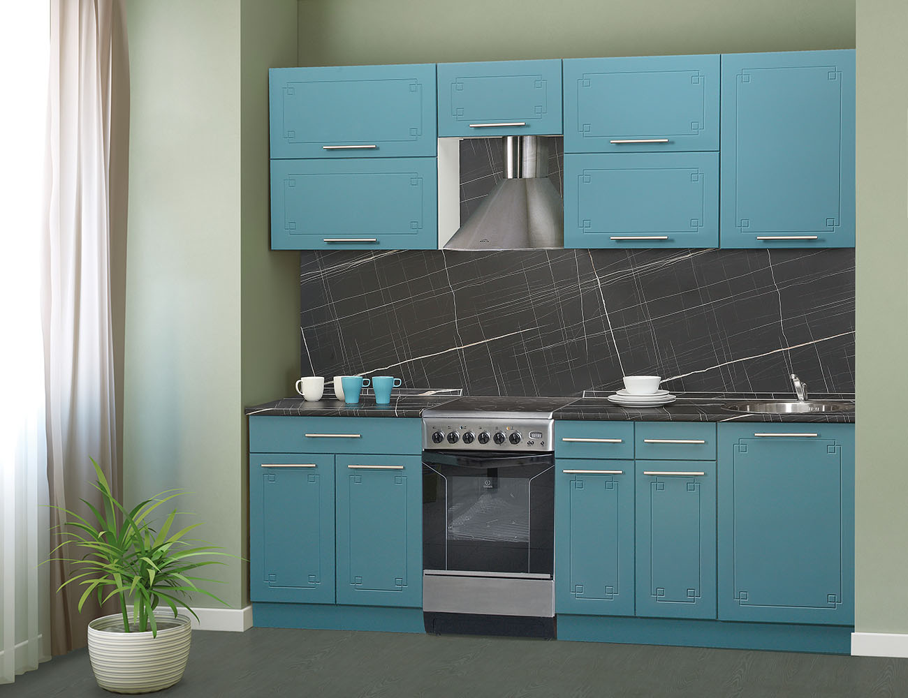 Кухня «Лира-Лайт» 1,6 салатовый-оникс