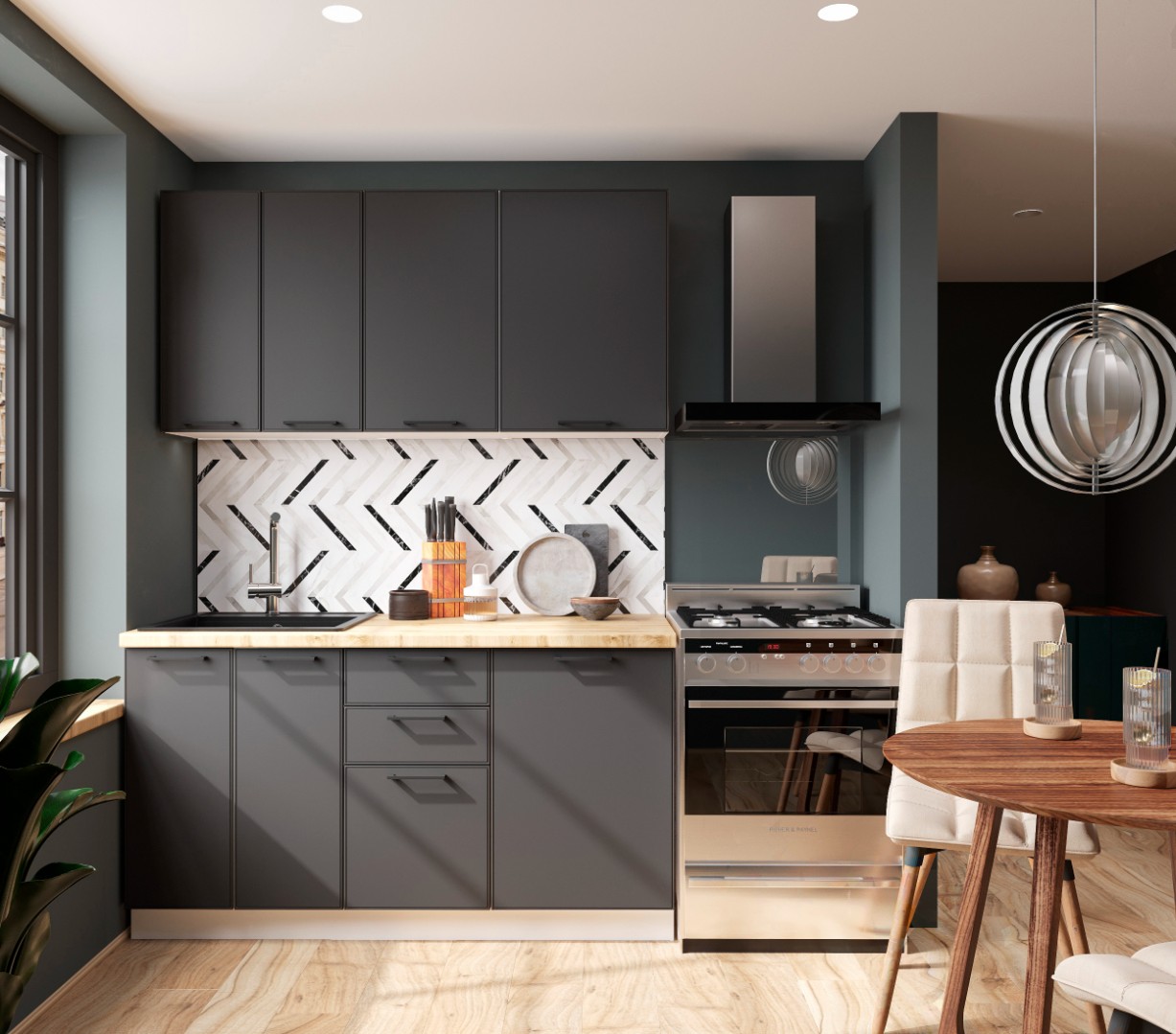 Общая ширина кухни: 1500 мм