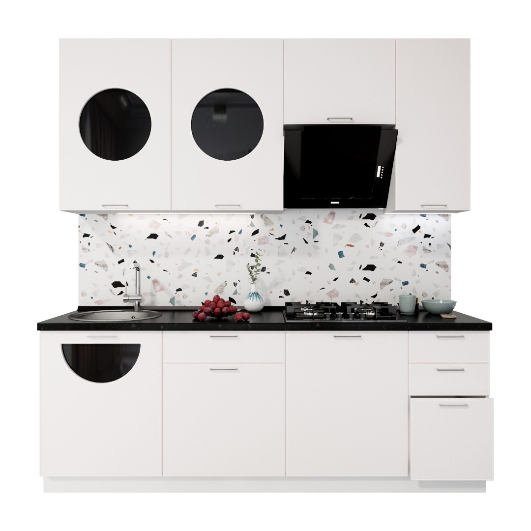 Материал фасада и корпуса: ЛДСП 16 мм. Ширина кухни 200 см.