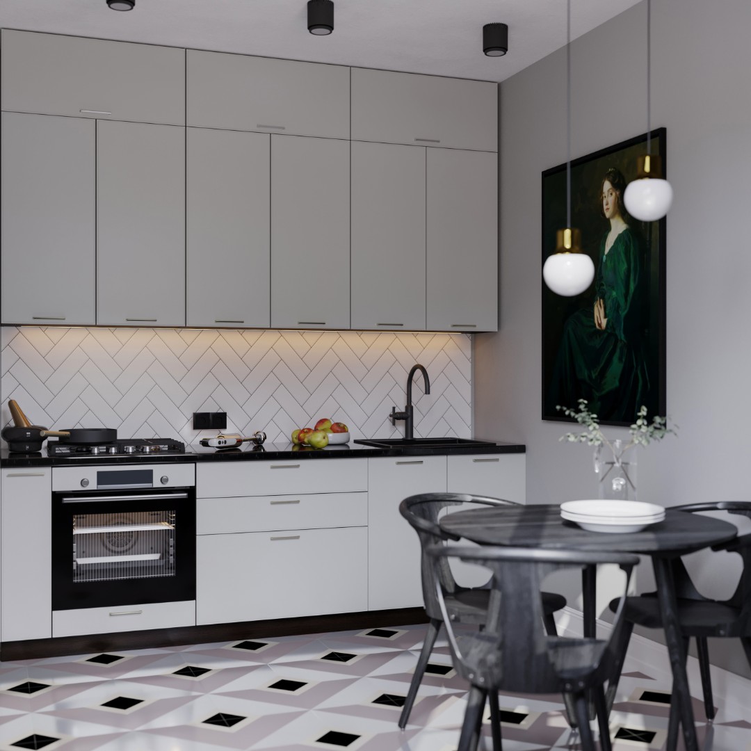 Кухня прямая «Mix Top-6» 2.1 м, белый-графит серый