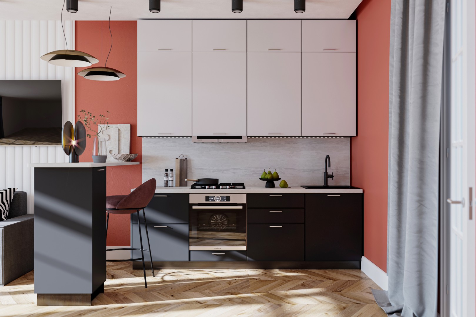 Длина кухни: 2.7x1.5 м. Материал фасада: ЛДСП.