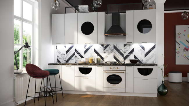 Готовая фабричная кухня под заказ. Фасады матовые с остеклением.