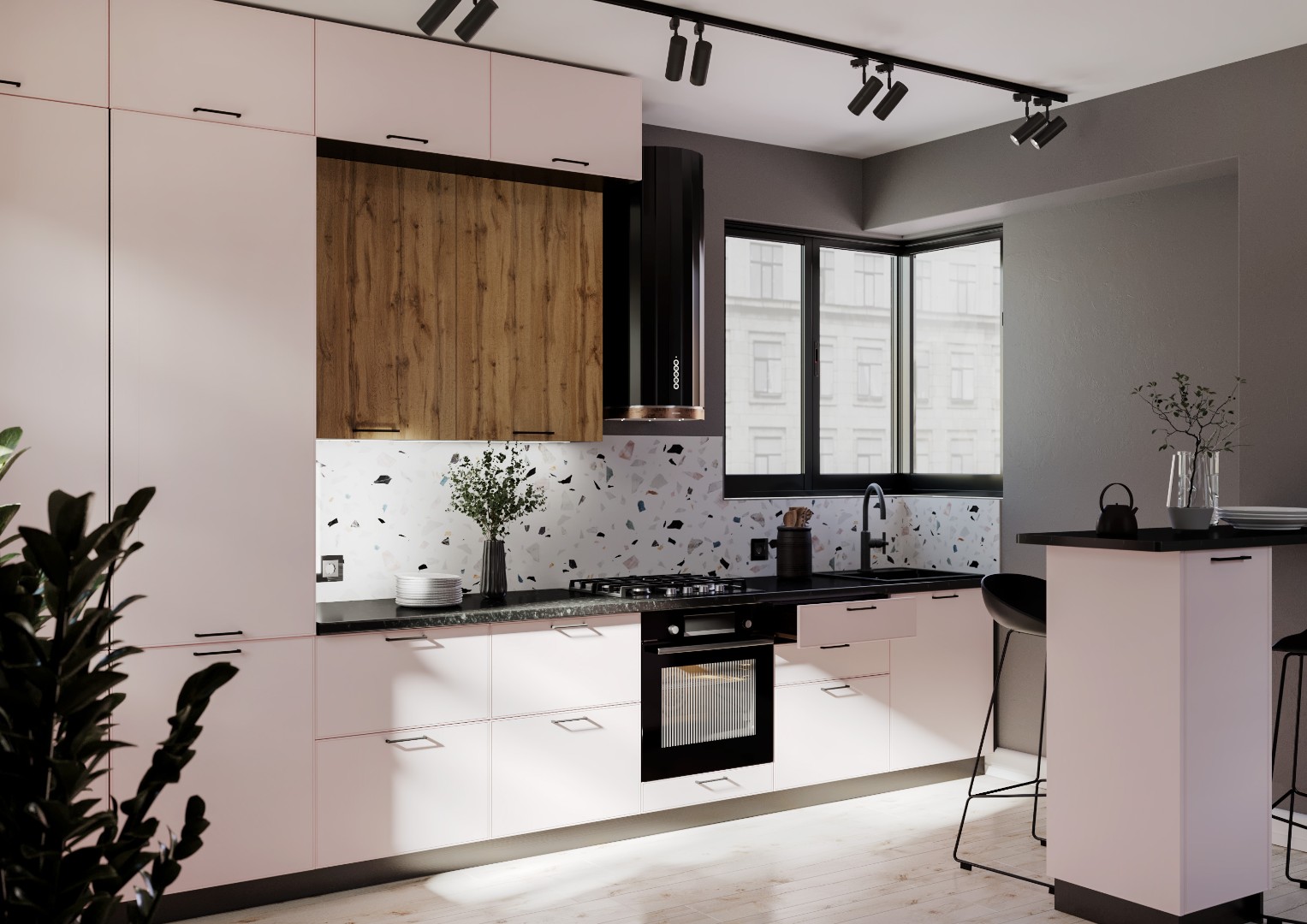 Темные матовые ручки. Современная фурнитура.