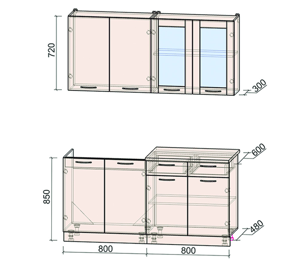 Недорогой гарнитур из ЛДСП. Разные цвета на выбор.