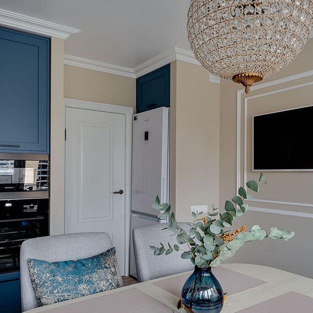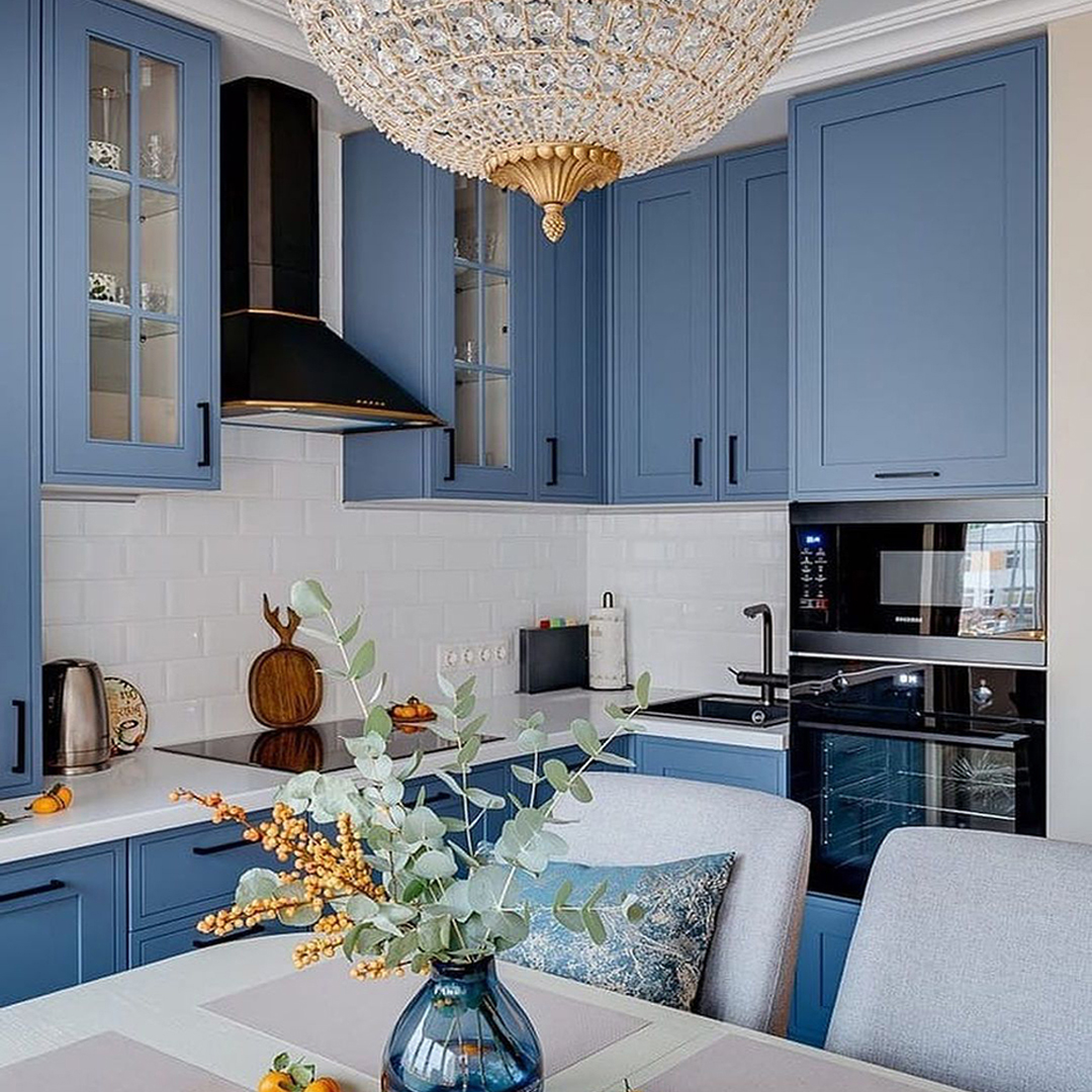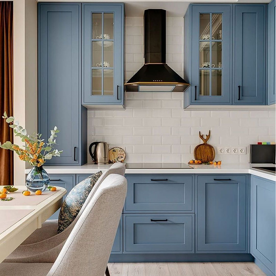 Современный кухонный гарнитур из крашенного МДФ. Вместительные шкафчики.
