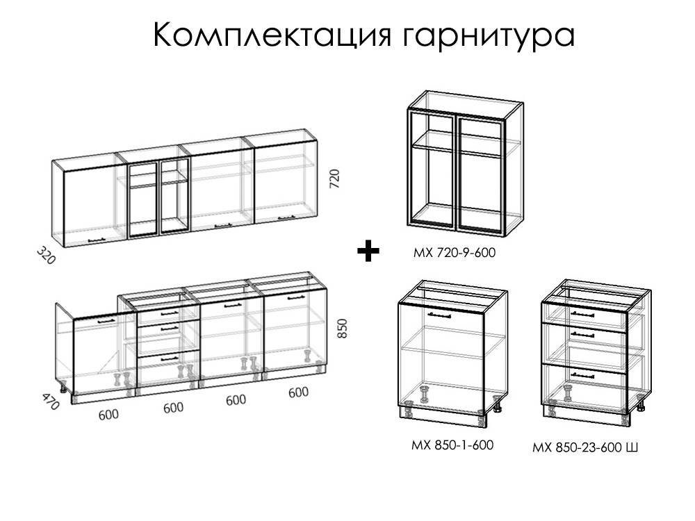 Внимание! Стоимость готового гарнитура указана без учета столешницы. Мойка и сушильная арматура также приобретаются отдельно.