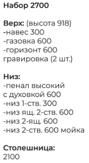 Цена указана за кухню шириной 2,7 метра. Цвет фасадов: белый и желтый.