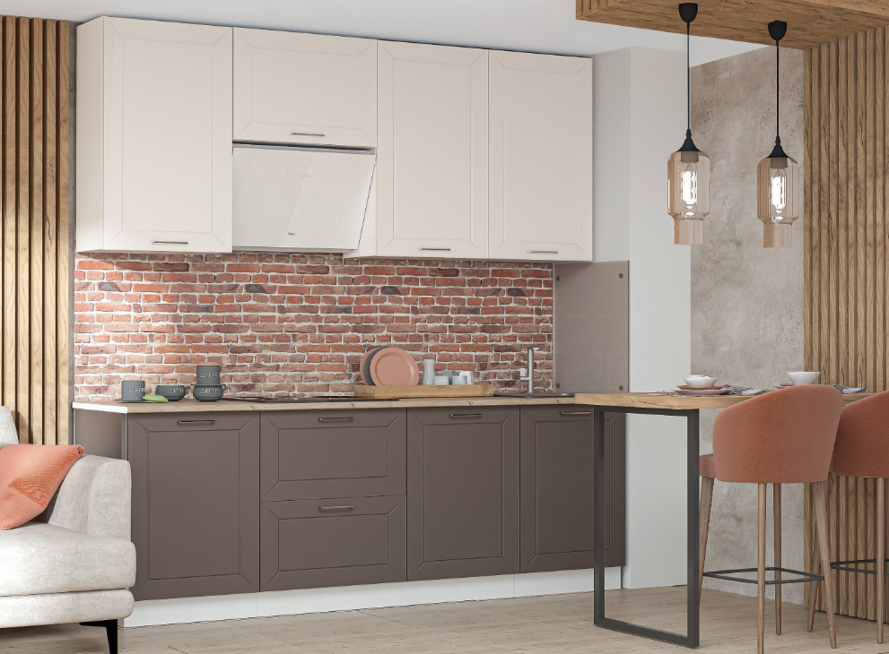 Цена указана за кухню шириной 2,7 метра. Цвет фасадов: тримасу и шитаке матовые.