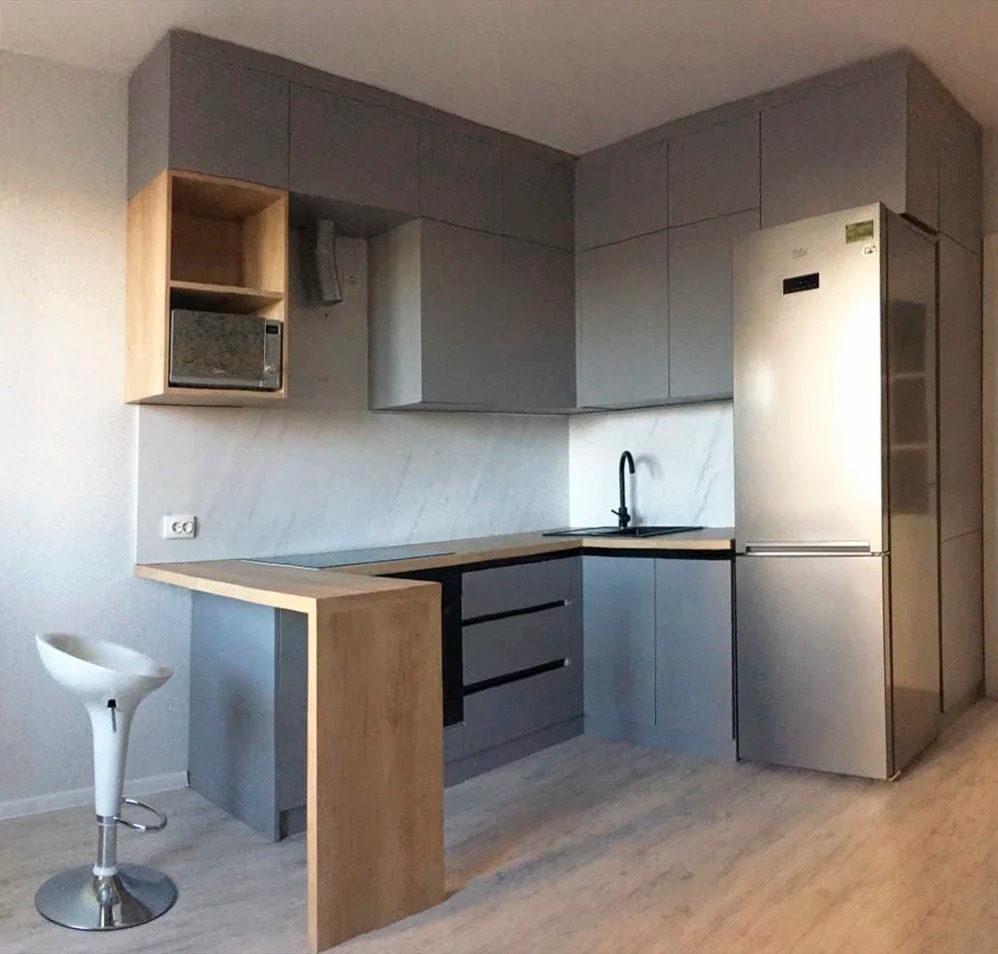 Готовая кухня со столешницей из постформинга в комплекте.