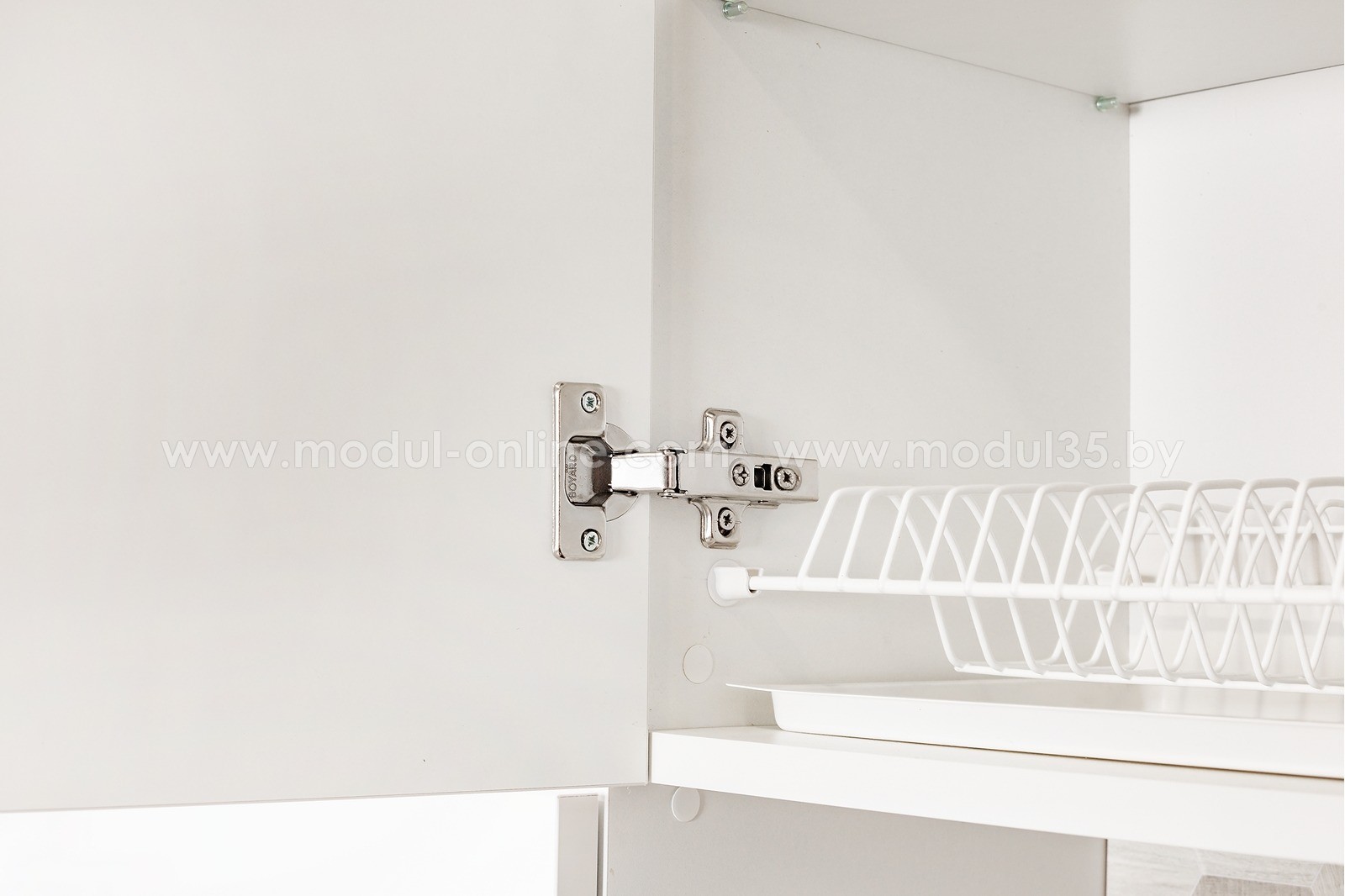 - Корпус. ДСП ЕGGER 18мм, 100% оклеен кромкой ПВХ REHAU, навеска: 3D регулируемые завесы и монтажная планка в комплекте, ДВП в ПАЗ, регулируемые опоры.
