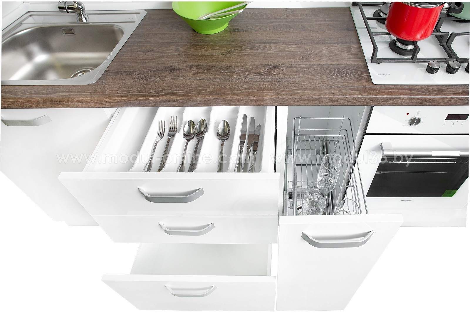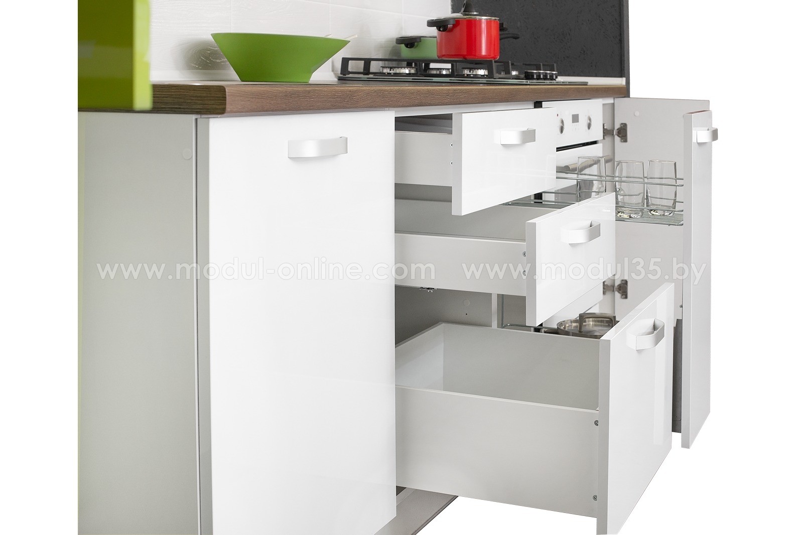 Материал: ДСП, крашеный МДФ. Фурнитура: Blum (Австрия).