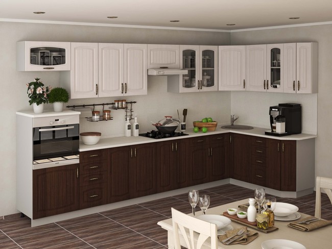 Кухня длиной 160 см. Фасады из ДСП двух цветов.