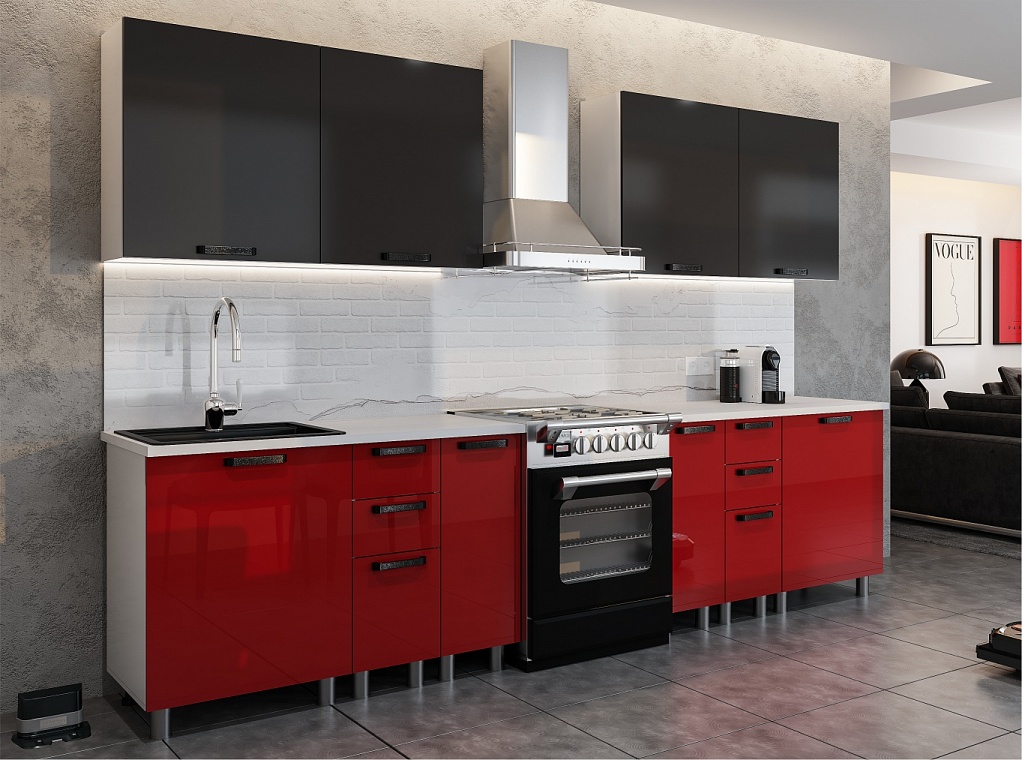 Кухня модульная «Контент Черный/Красный 2.4 м»