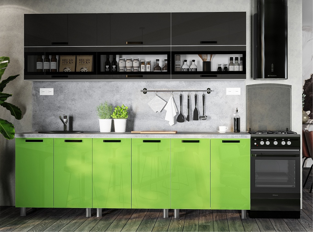 Кухня модульная «Контент Черный/Салатовый 2.4 м»