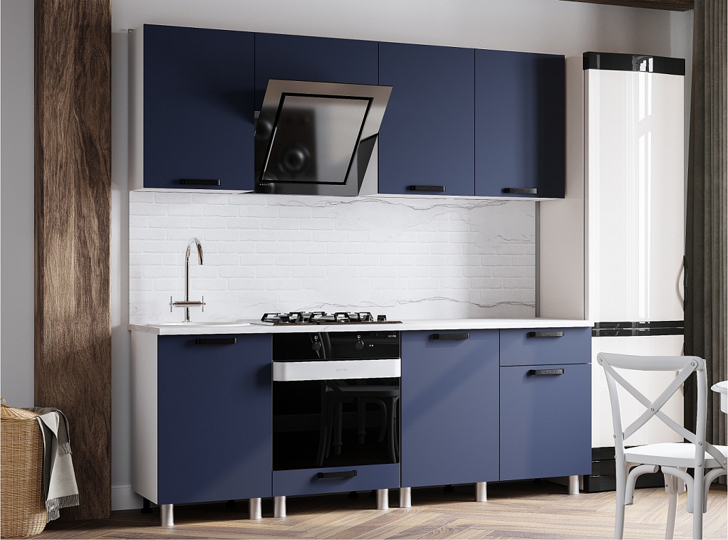 Прямая кухня «Mix-8» 2,4 м, сумеречный голубой-дуб крафт золотой