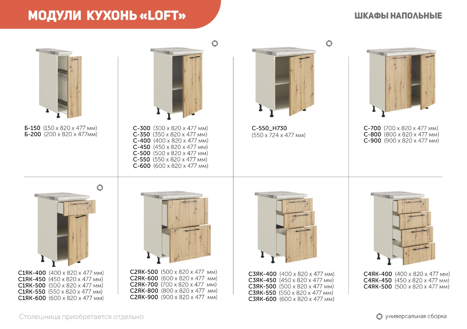 Цвет нижних фасадов: Камень темный, Дуб крафт золотой