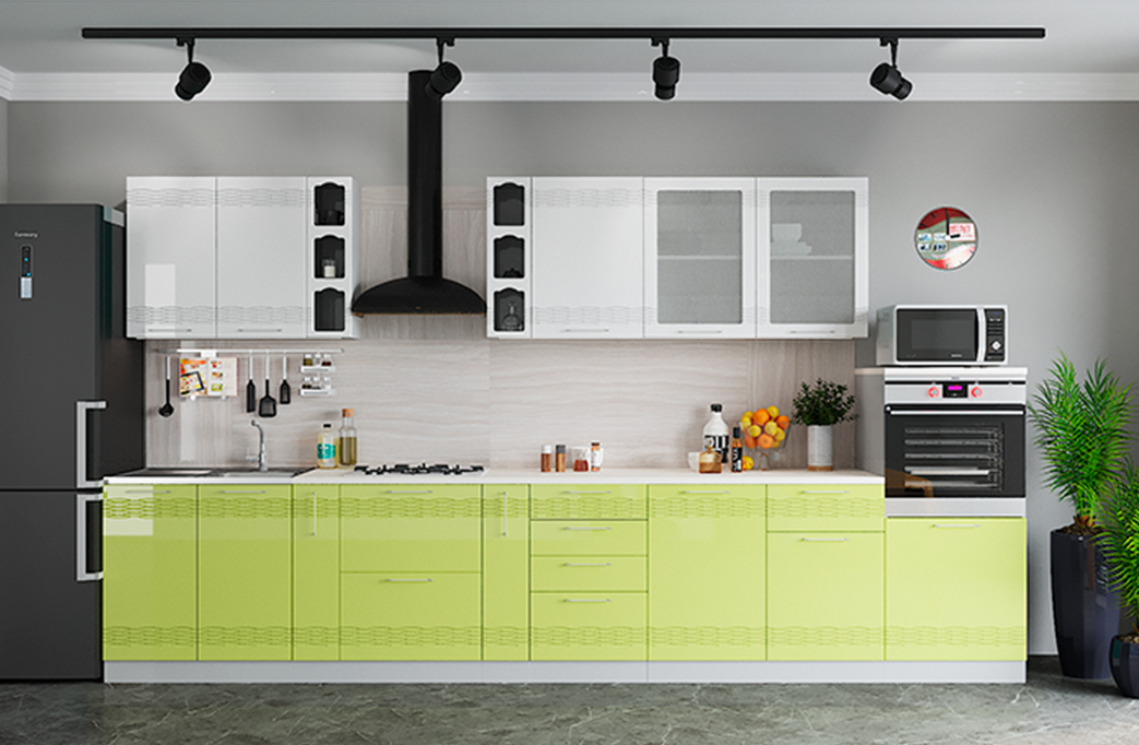 Материал фасада и корпуса: ЛДСП 16 мм. Ширина кухни 120 см.