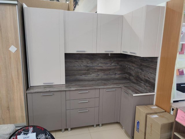 Готовый гарнитур с комбинированными фасадами из ЛДСП. Ширина кухни 190 см.
