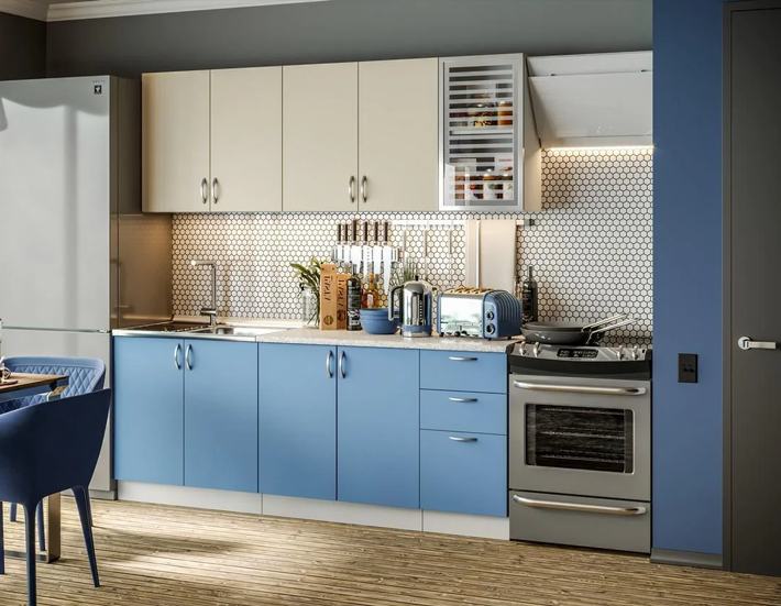 Вы можете заказать у наших специалистов дизайн-проект кухни, с абсолютно любыми размерами и конфигурацией, из широкого перечня предложенных модулей, совершенно бесплатно. Также можно изменить цвет и фрезеровку.