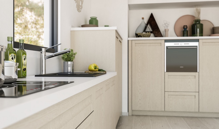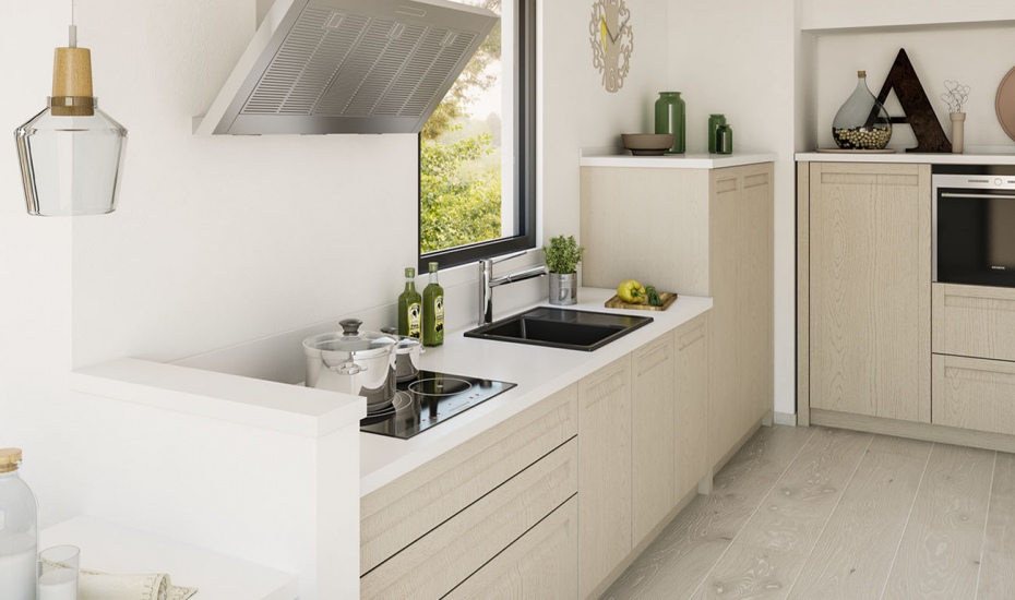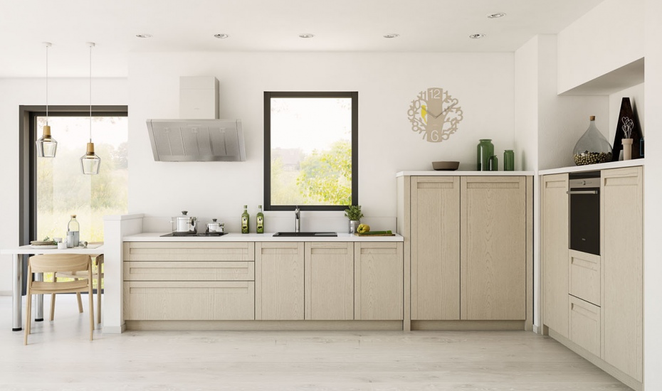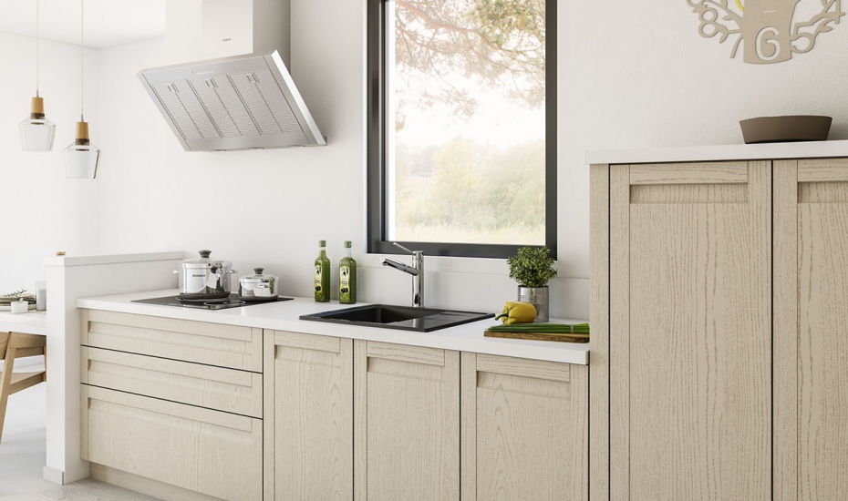 Эргономичная и благородная кухня с островом в неоклассическом стиле. Фасады из пленочного МДФ.
