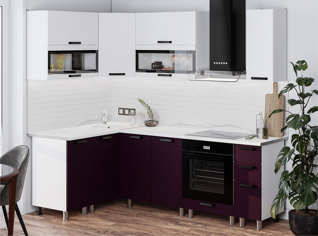 Кухня модульная угловая «Контент Белый/фиолетовый 2.2х1.5 м»