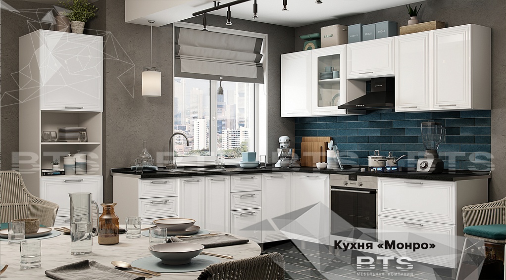 Кухня модульная угловая «Монро Бланш 3.0х2.6 м»