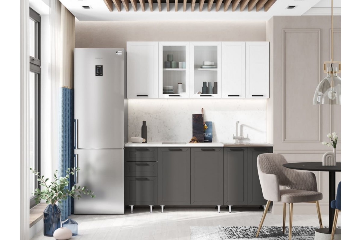 Кухня «Монако» 1,8 м комплект 1 (графит софт - белый снег софт)