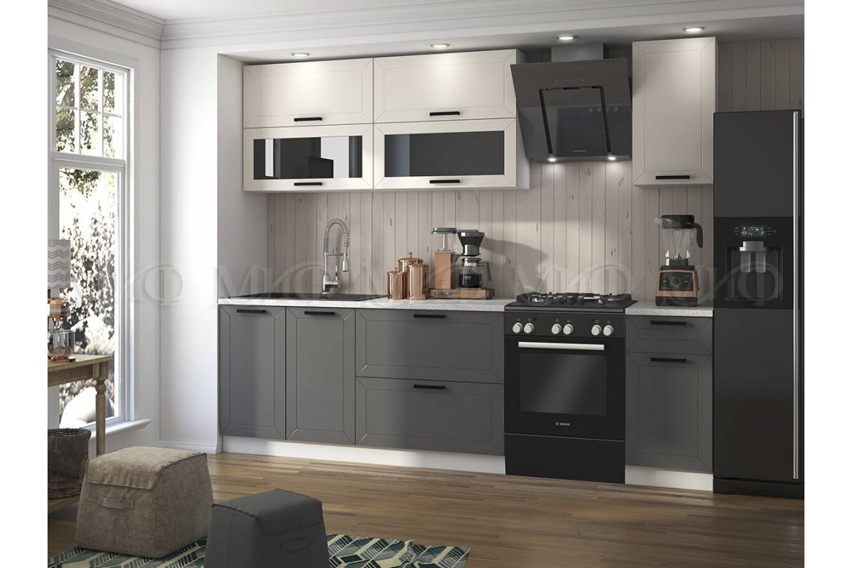 Кухня «Монако» 2,0 м комплект 2 (графит софт - белый снег софт)