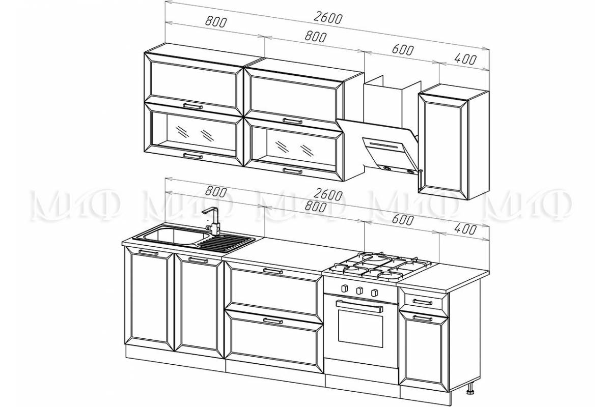 Глубина напольных шкафов с учетом столешницы: 600 мм.