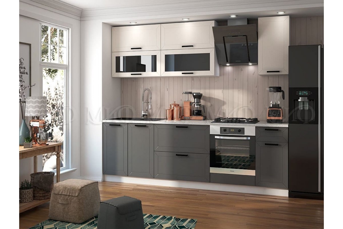 Кухня «Монако» 2,6 м ВТ (графит софт - ваниль софт)