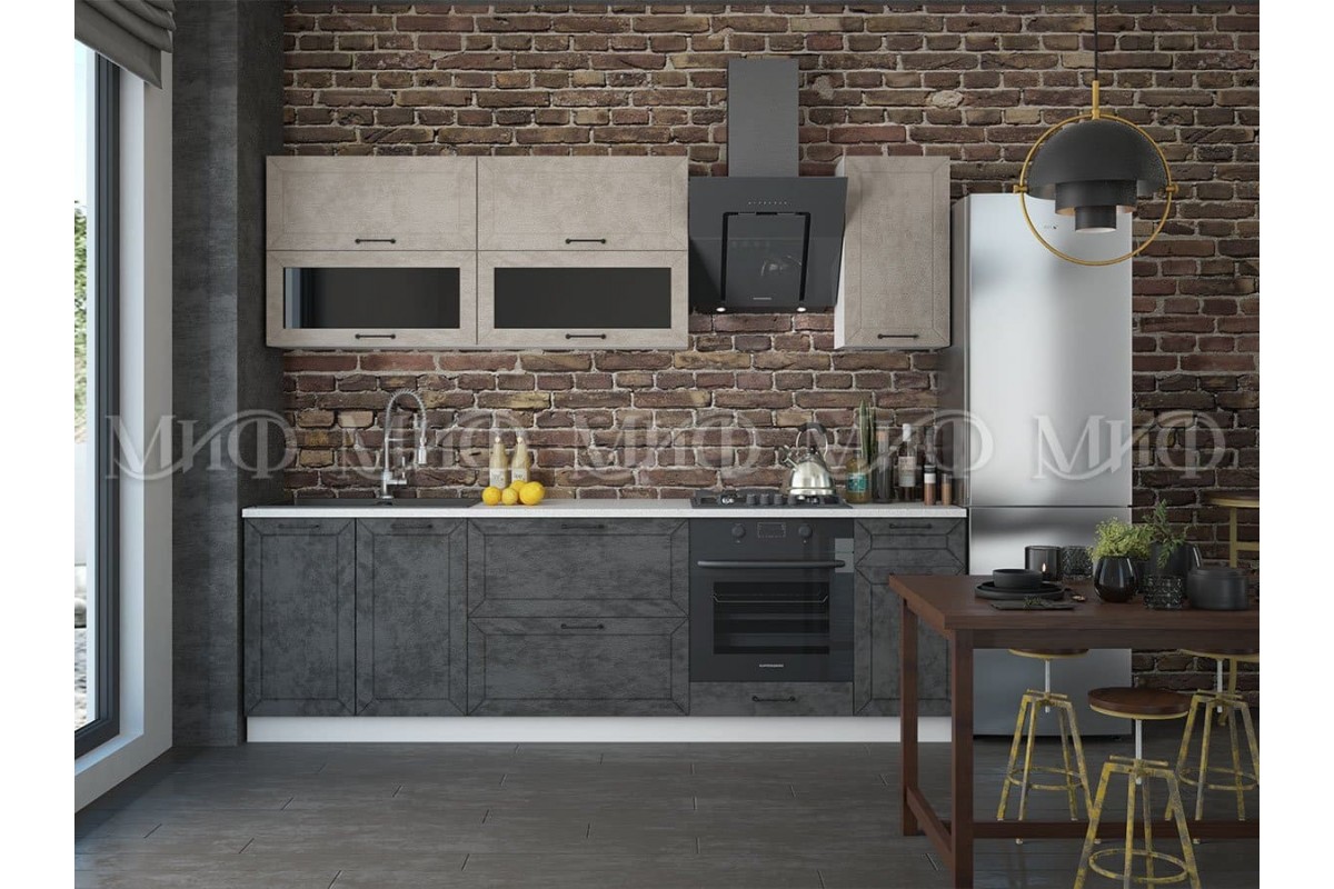 Кухня «Монако» 2,6 м ВТ (камень темный - камень светлый)