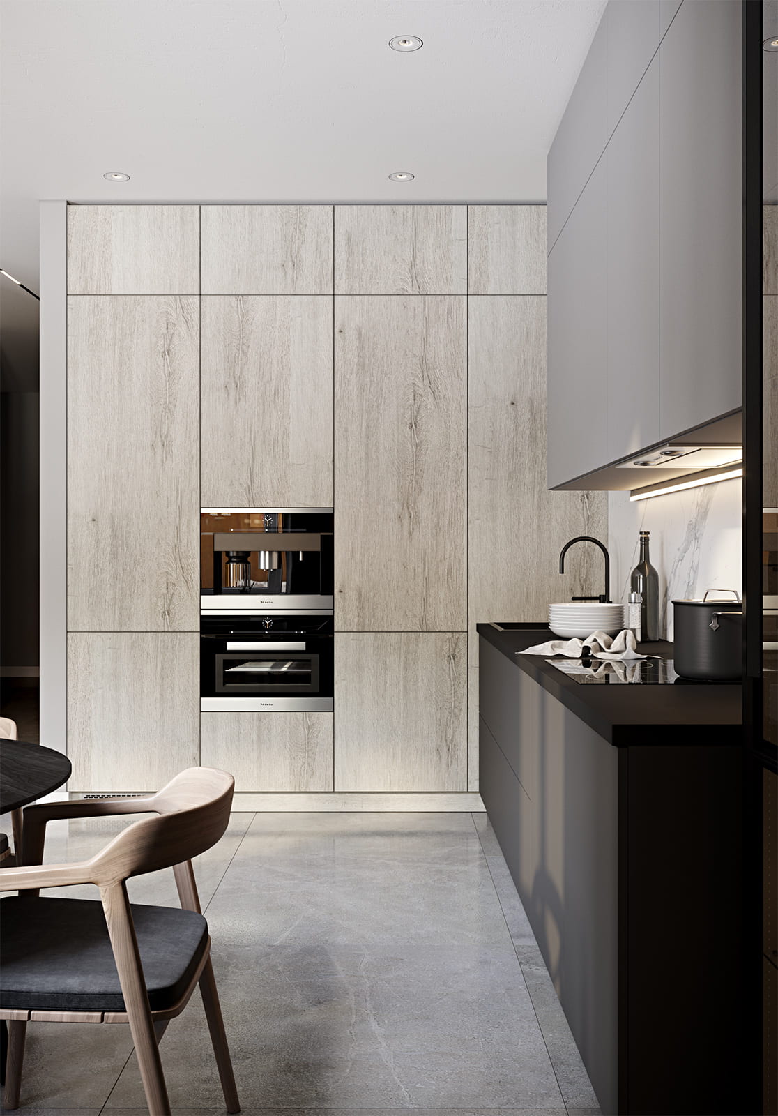 Ниши для встраиваемой техники, скинали с фотопечатью, удобная фурнитура.