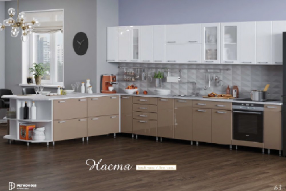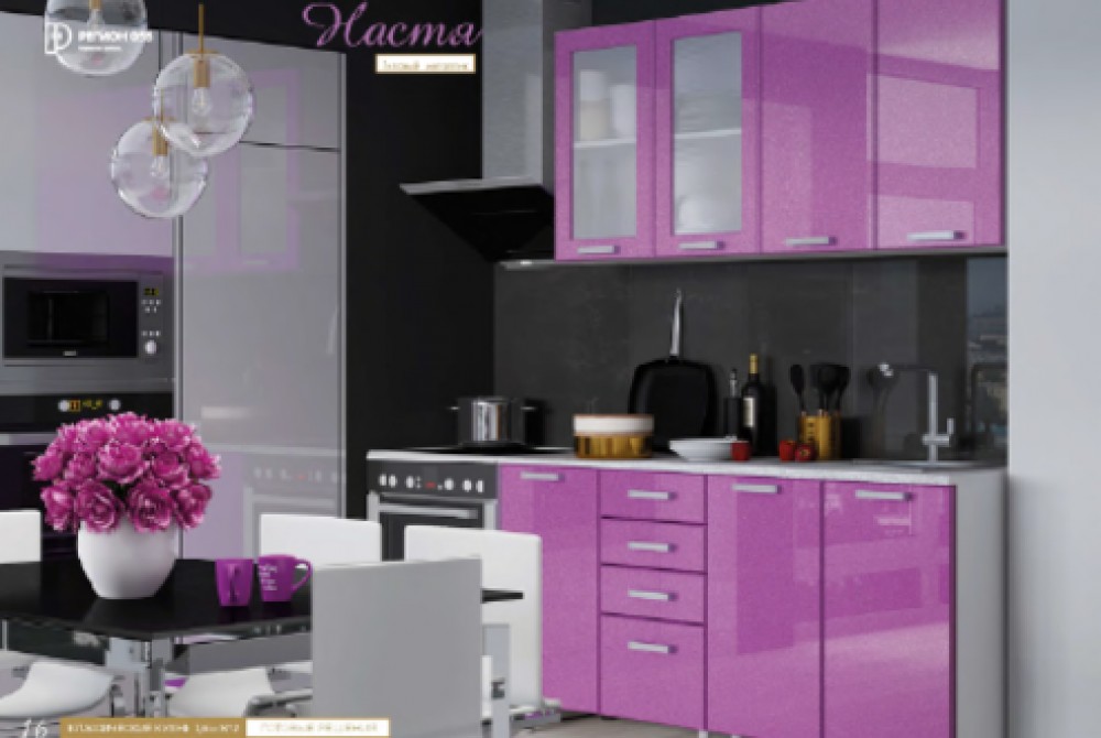 Недорогая кухня с гладкими фасадами, широким выбором цвета и большим выбором модулей.