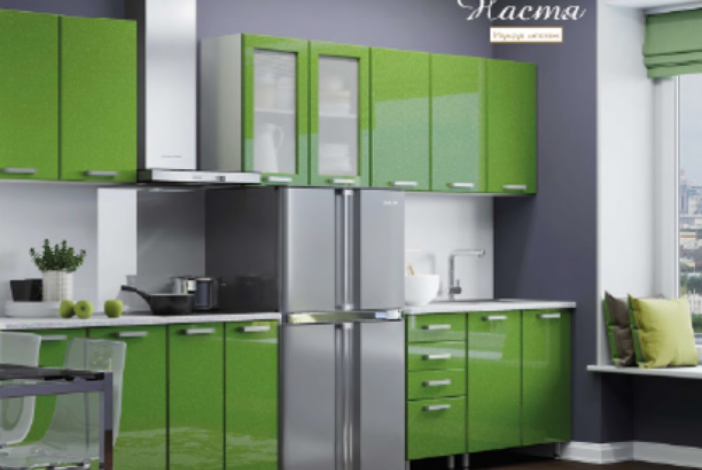Кухня «Лира-Лайт» 2,4 зеленый-оникс